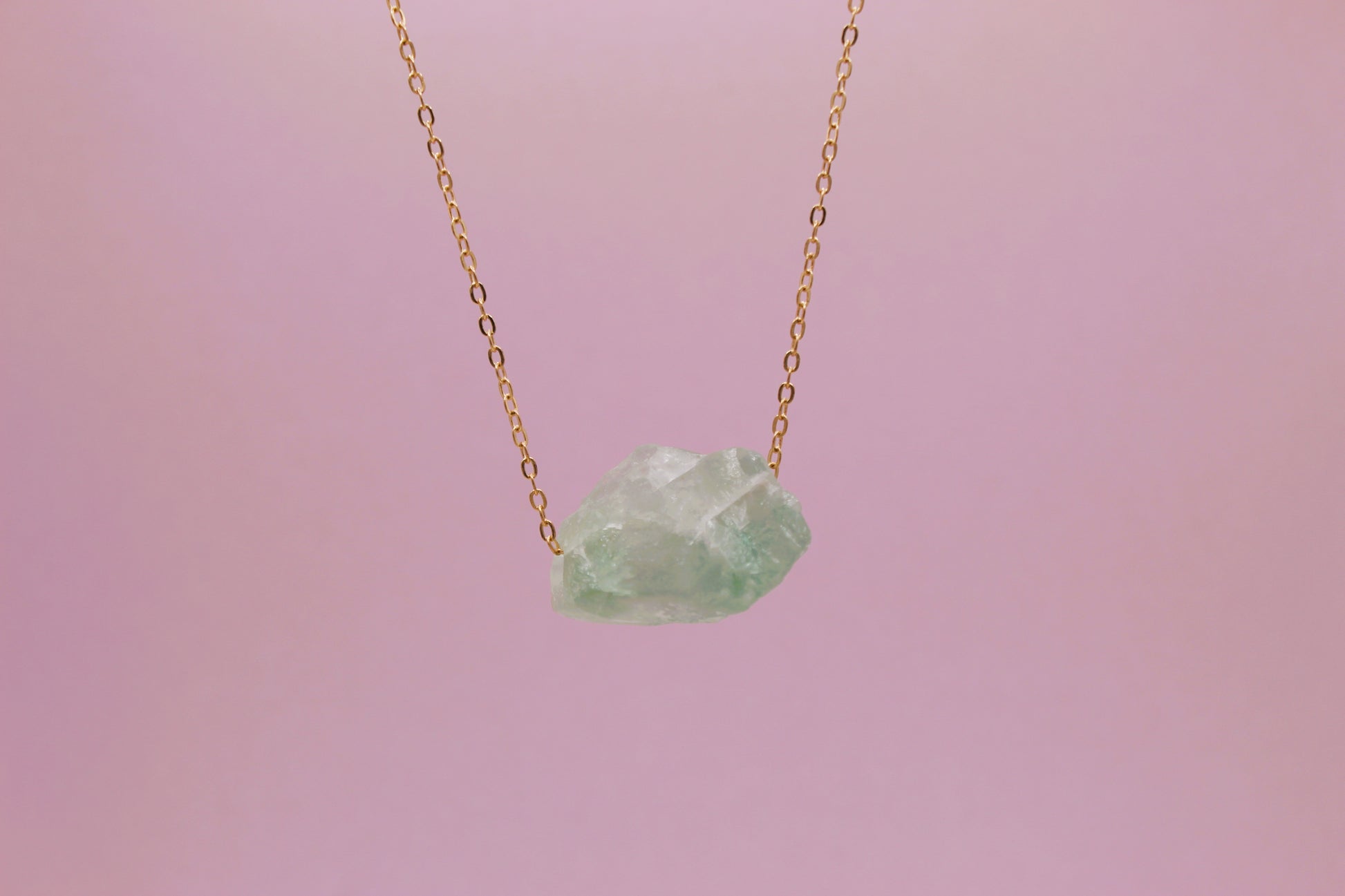 Fluorite Raw Crystal 14K Gold Plated Pendant Necklace