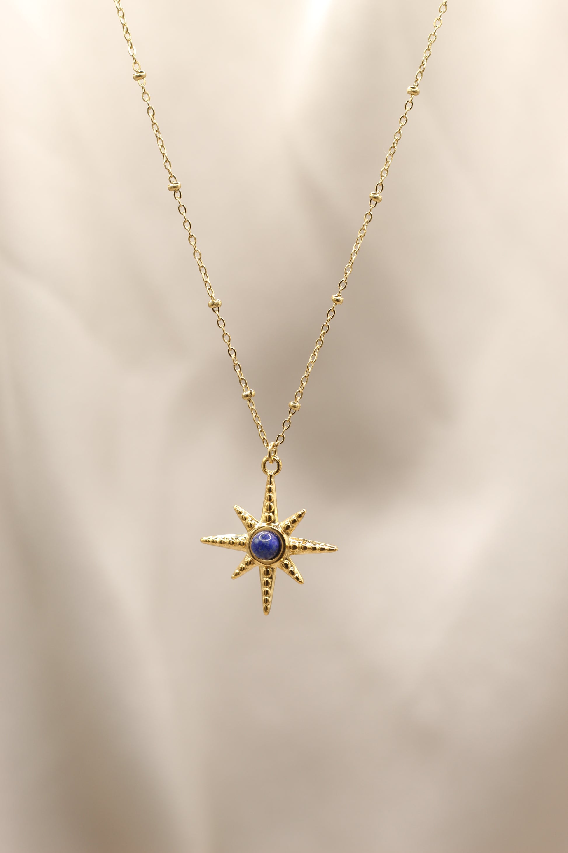 Bring calm and inspiration to your look with this 14k gold-plated necklace, featuring a radiant star pendant accented with deep blue Lapis Lazuli. Sleek, versatile, and full of meaning, it blends everyday elegance with timeless symbolism.