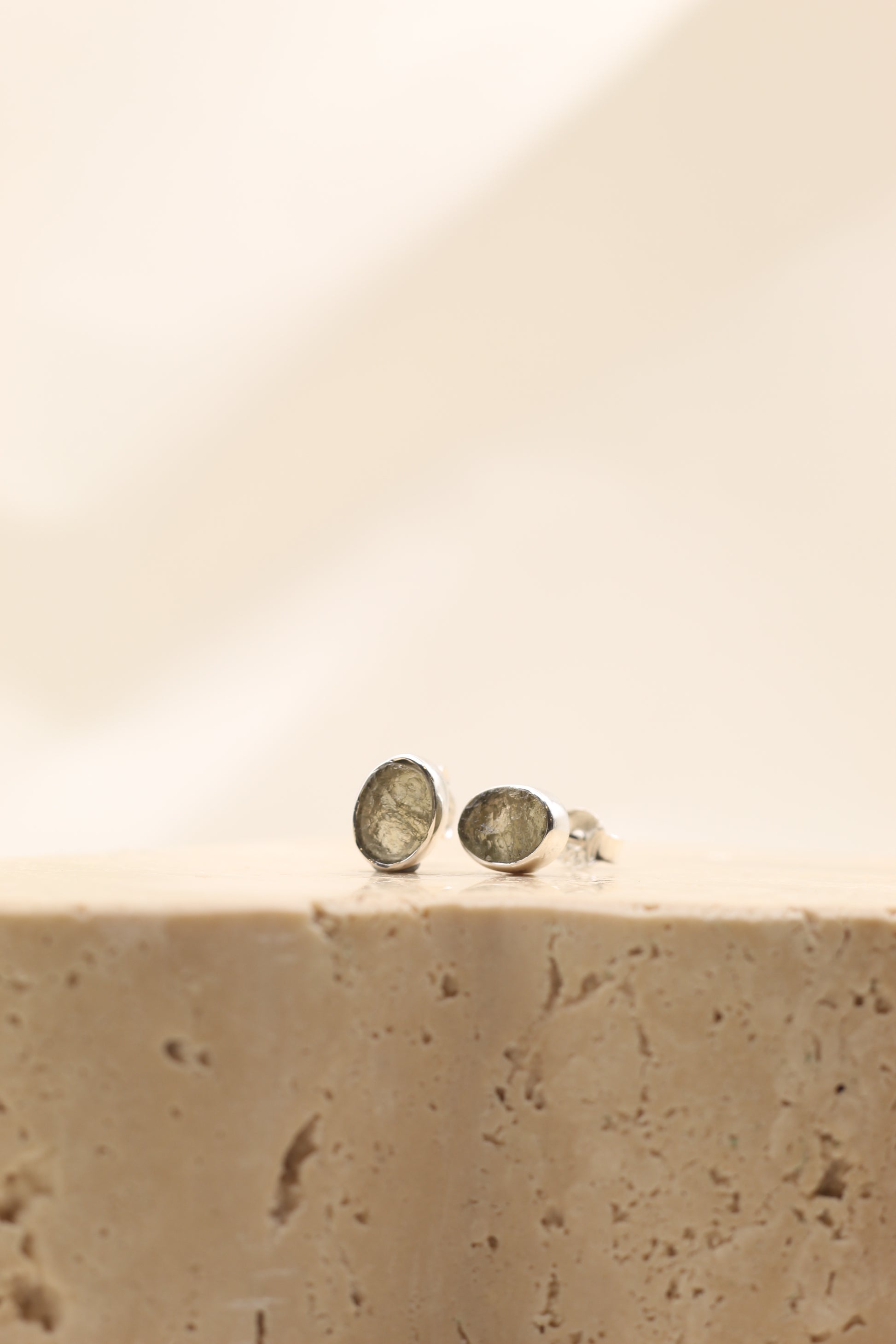These sterling silver studs feature genuine Moldavite in an elegant oval cut, offering a subtle yet powerful touch of energy for everyday wear. Moldavite is known for its transformative power, bringing in soul growth and expansion. It helps activate intuition, opportunity, and blessings, while supporting the inner work needed to align with your highest path.