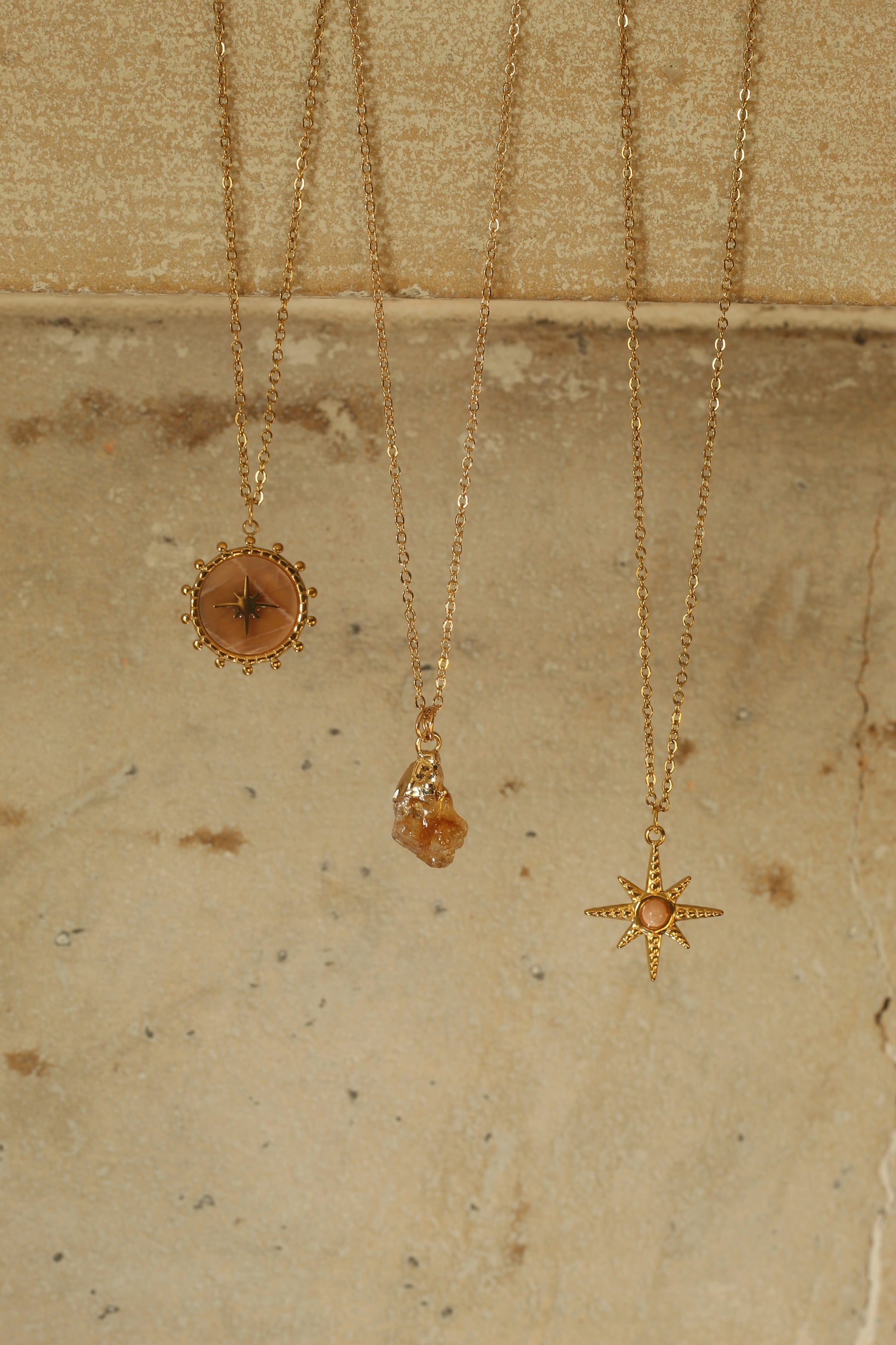 Bring warmth and positivity to your look with this beautifully crafted gold-plated necklace, featuring a radiant star pendant accented with a glowing Sunstone crystal. Sleek, versatile, and full of meaning, this piece blends everyday elegance with empowering symbolism.